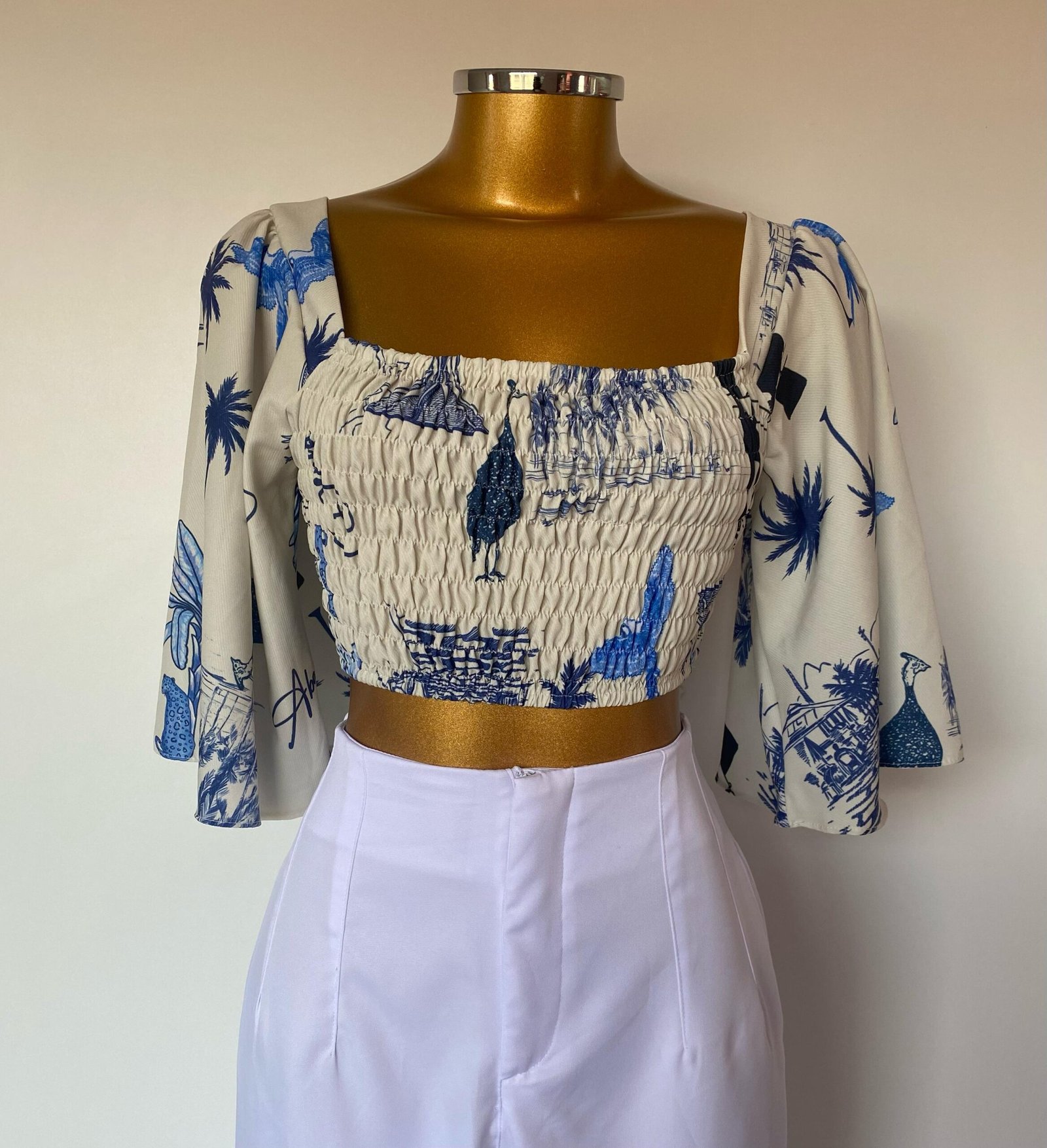 Esse cropped com elastec é a peça ideal para quem busca conforto e estilo. Com mangas flare que conferem um toque de sofisticação, ele traz uma estampa delicada e moderna, perfeita para diversas ocasiões. Sua modelagem versátil permite criar diferentes looks, do casual ao mais arrumado, garantindo elegância e praticidade em qualquer combinação. Não pode faltar no seu guarda-roupa!