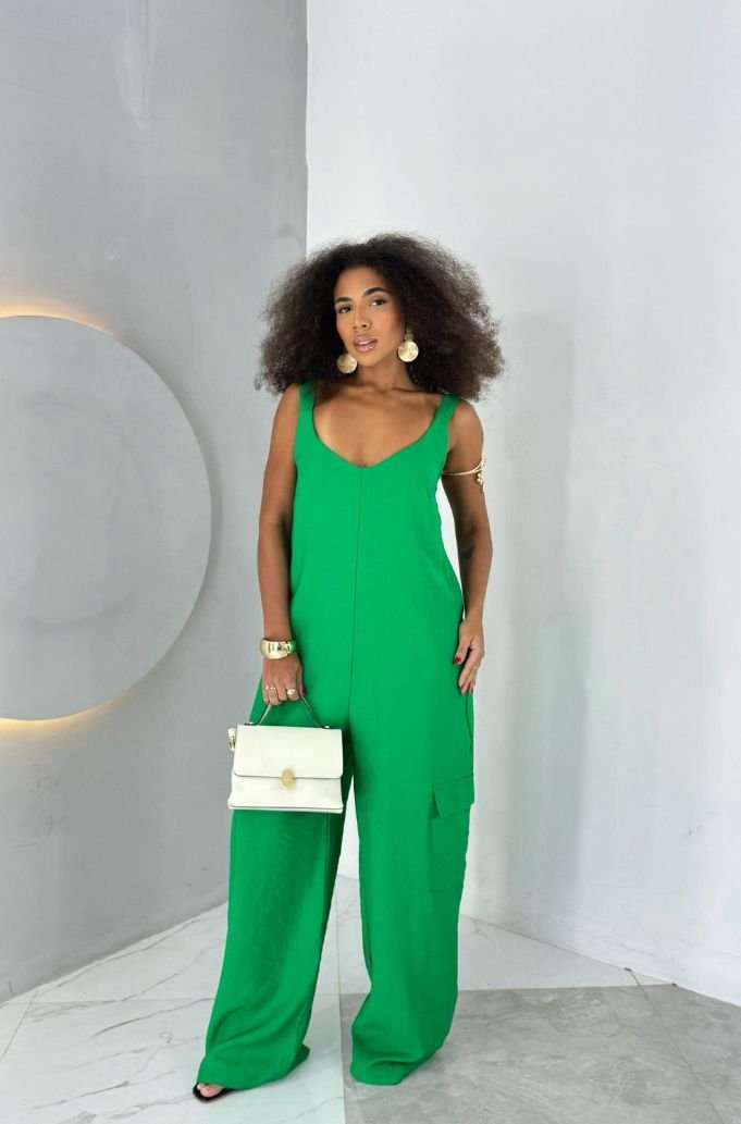 O macacão cargo feminino une estilo moderno e praticidade, perfeito para diversas ocasiões e com ajuste confortável.