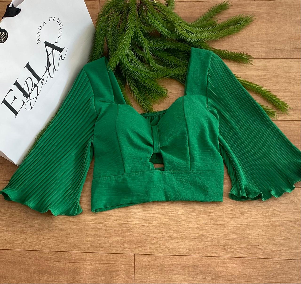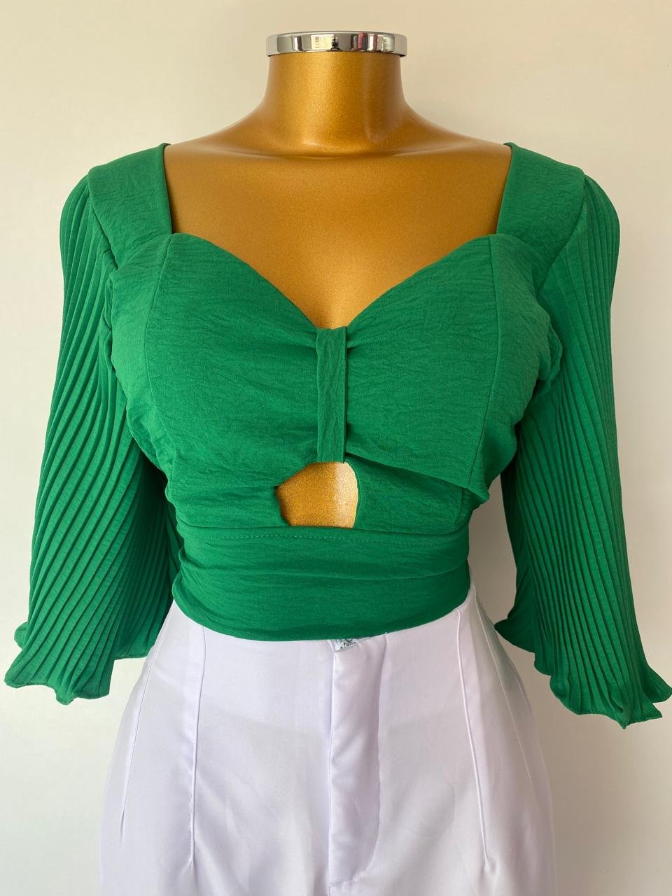 Esta peça elegante e moderna é perfeita para diversas ocasiões, do casual ao sofisticado. Com manga flare plissada e um delicado detalhe de amarração nas costas, o semi cropped oferece um visual feminino e contemporâneo. Combine com uma saia midi para um look chic, com calças de alfaiataria para um visual mais formal, ou com jeans para um estilo casual e despojado. Versátil e cheio de personalidade, é uma escolha ideal para valorizar seu estilo em qualquer momento!