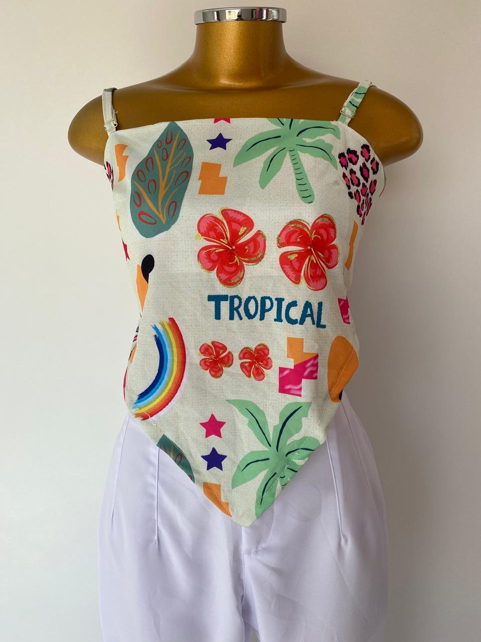 Este top lenço estampado é a peça perfeita para quem busca um visual moderno e versátil. Com alças ajustáveis e amarração nas costas, oferece conforto e estilo, permitindo diversas combinações. Use com shorts jeans para um look casual, com saias para um visual feminino ou com calças de alfaiataria para um toque sofisticado. Uma peça que transforma suas produções com charme e praticidade!